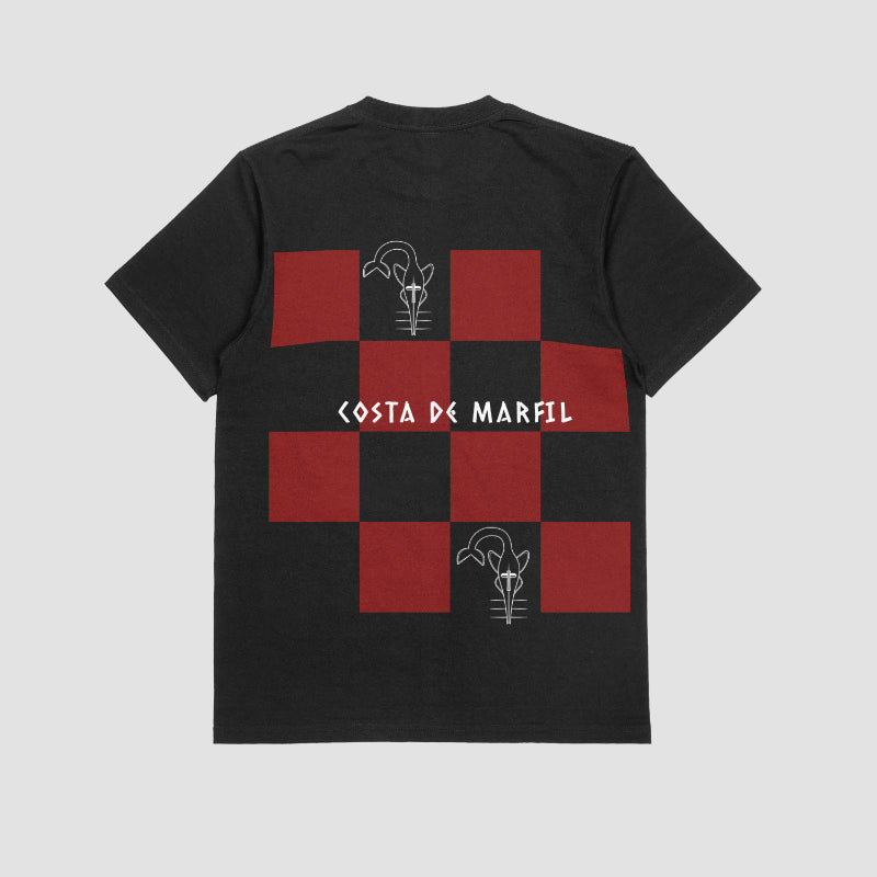 IVORY CLASH TEE WITH CHECKERBOARD PATTERN